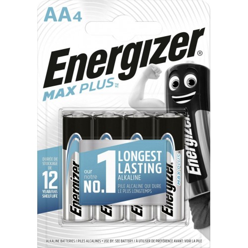 • Energizer Max Plus Alkali-Manganese AA Battery 4 Pack